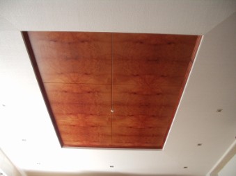 Kassettendecke Füllung furniert - Holzart: Madrona-Wurzelmaser Friese weiß